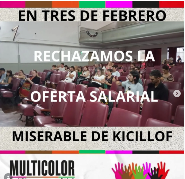 Desde la *Multicolor* Rechazamos una oferta salarial que vuelve a estar por debajo de la inflación, que consolida una pérdida histórica del salario docente, dejándolo en todos los casos bajo la línea de pobreza.
