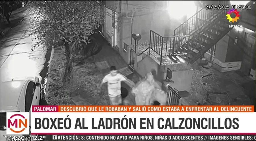 Por eso el vecino salió de inmediato en calzoncillos junto a su hijo, y al encontrarlo le propinó una tremenda paliza que lo dejó tirado en el piso. Según se puede escuchar en las imágenes difundidas por el programa “Mediodía Noticias” de El Trece, el hombre le dijo al asaltante: “Dame la rueda y la batería”. Pero el delincuente le respondió que solo le devolvería la rueda y ahí se llevó la golpiza.