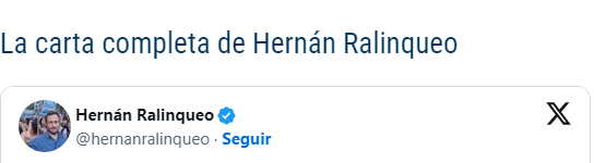 Hernán Ralinqueo, exintendente de 25 de Mayo y Subadministrador General del Instituto de la Vivienda, se despachó con una durísima carta contra Diego Valenzuela y Ramiro Egüen, intendentes de Juntos por el Cambio que se pasaron a La Libertad Avanza.