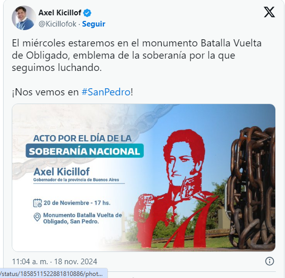 En las últimas horas, el gobernador de la provincia de Buenos Aires, Axel Kicillof, anunció que encabezará un acto en San Pedro para celebrar el Día de la Soberanía Nacional el próximo miércoles 20. En ese marco, apunta a replicar la movilización realizada en Berisso por el Día de la Lealtad y, al igual que en aquella oportunidad, La Cámpora no estará presente en el encuentro.