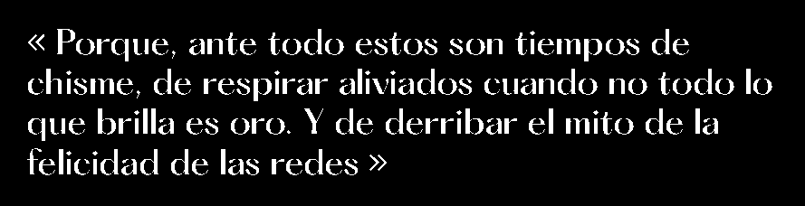 Porque, ante todo estos son tiempos de chisme, de respirar aliviados cuando no todo lo que brilla es oro. Y de derribar el mito de la felicidad de las redes. Una trampa de la que nadie sabe bien cómo salir. Y en la que todos jugamos, por un rato, a ser Fernanda (Lorena Vega) la psicóloga de Vicky en Envidiosa. Es que necesitamos entender estos raros nuevos tiempos.