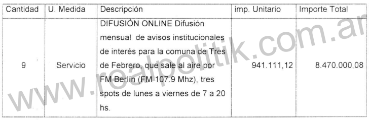 En la compra directa Nro.. 89 (expediente 4117-48656/2024) se adjudicaron 8.470.000 a La Cornisa producciones, vinculada al periodista Luis Majul, para la difusión de avisos institucionales en FM Berlín 107.9. Aquí también se objetó el encuadre como compra directa por excepción y la incorrecta consignación de la unidad de medida.