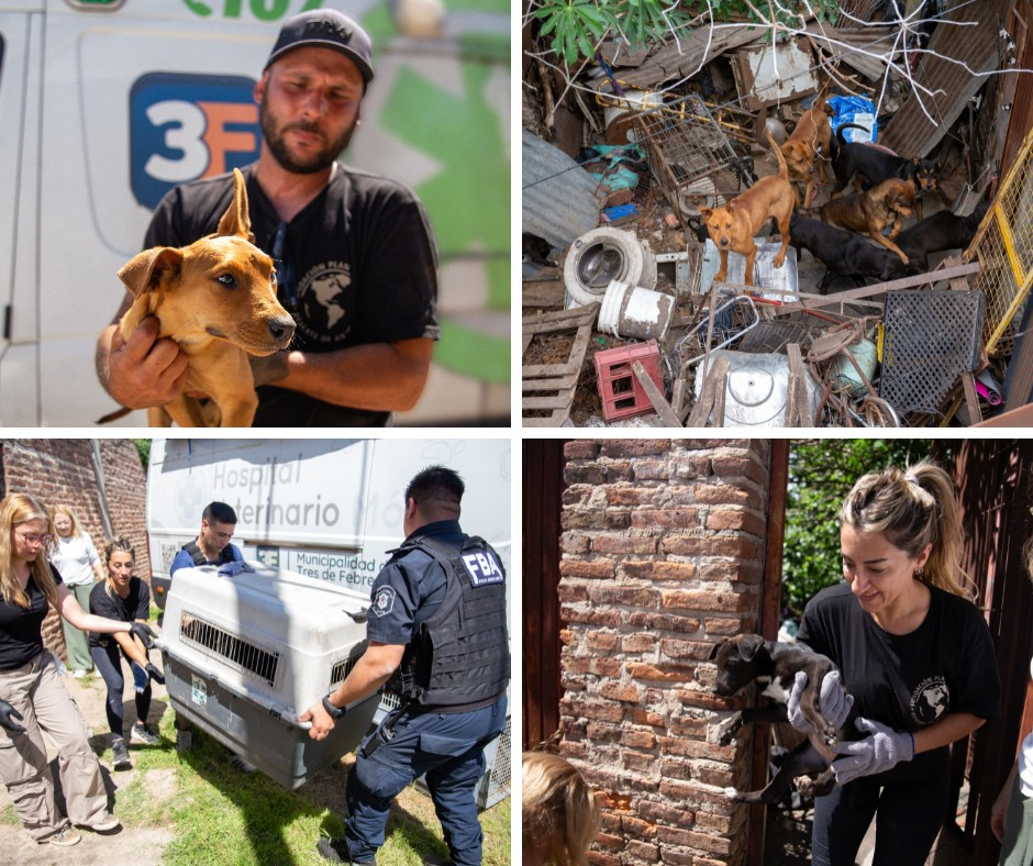 “Gracias a la denuncia de vecinos, junto al Centro de Salud Animal de Tres de Febrero, las fuerzas de seguridad, Defensa Civil, SAME y la Fundación Planeta Vivo, realizamos un allanamiento en un domicilio en Ciudadela donde rescatamos a 7 perros adultos y 5 cachorros que estaban en situación de abandono. Los animales vivían encerrados entre sus propias heces, rodeados de chapas, muebles, escombros y basura. En el procedimiento, el responsable fue imputado por maltrato animal. Gracias al trabajo en conjunto, los perros ya reciben atención y cuidados en el refugio Los Perritos del Palomar para su futura adopción”.